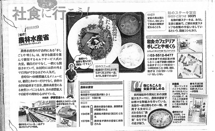 | 2019年8月20日 | テレ東プラス | 農林水産省の食堂「手しごとや 咲くら」で食べる、美味しすぎるクジラ料理 |
